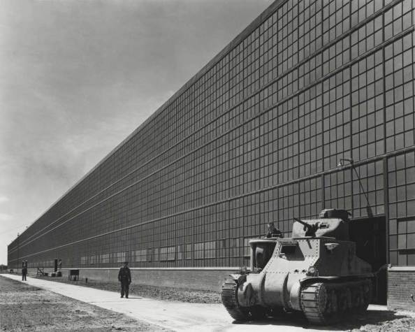 Arsenal de chars de Chrysler, Warren Township – Michigan, par Albert Kahn Associates, 1941 (Photographie de Hedrich Blessing – Chicago History Museum)