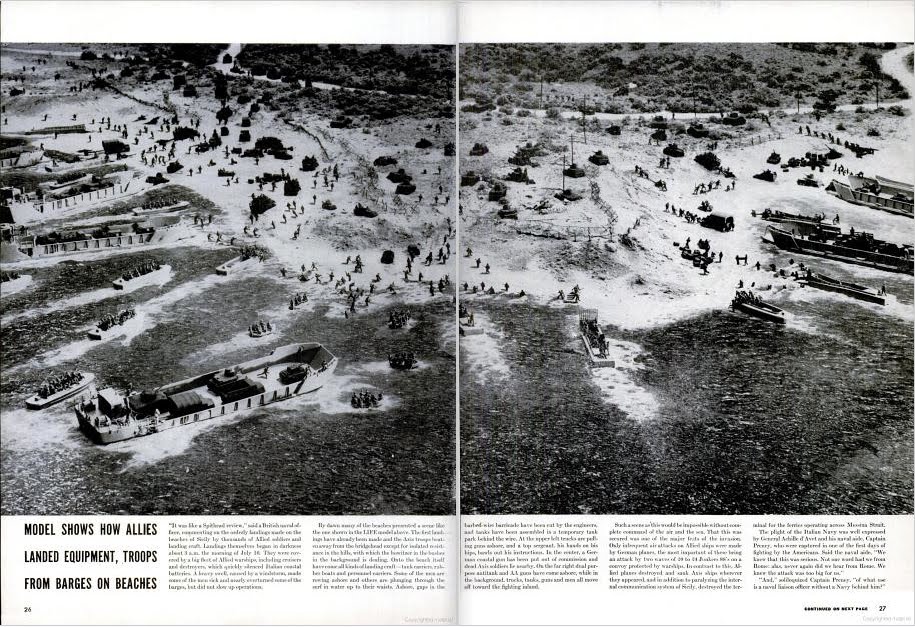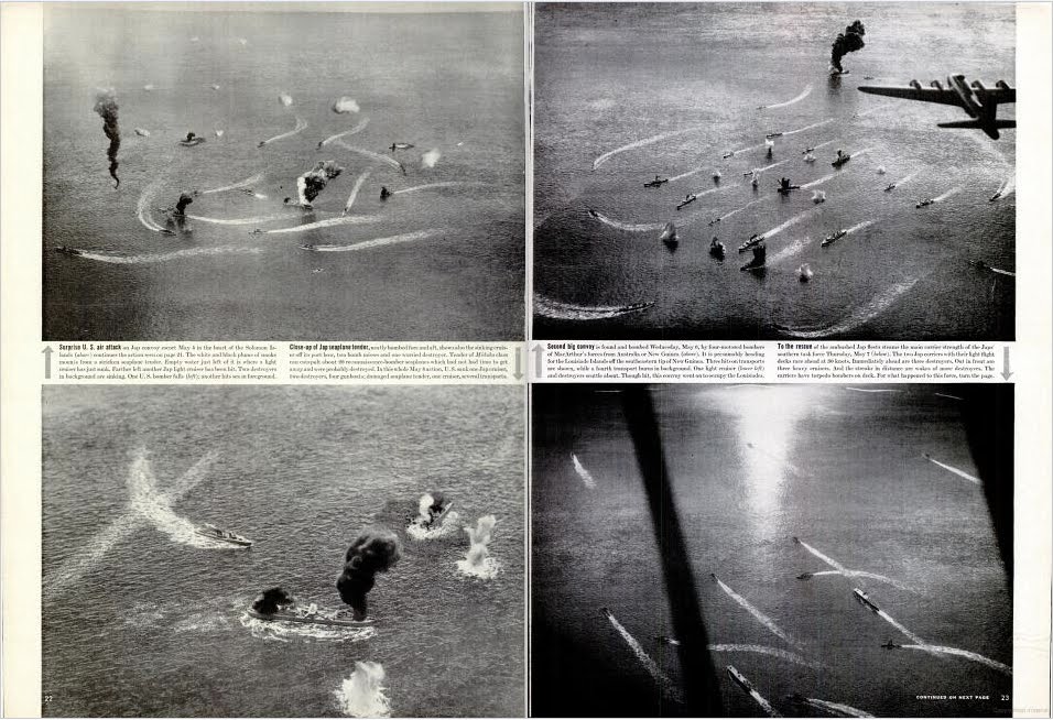 Dioramas des différentes batailles aériennes et navales réalisés par Norman Bel Geddes pour LIFE Magazine