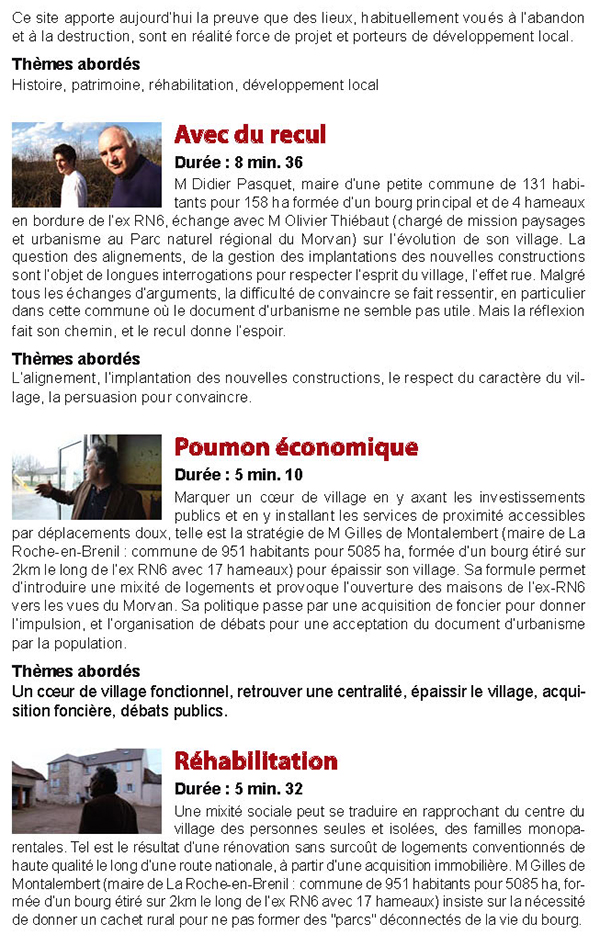 (1) « Un monde pour soi », film de Yann Sinic – Ecrit par Nathalie Combe – avec le concours de 13 Parcs Naturels Régionaux, du Ministère de l’écologie, de l’Energie, du Développement Durable et de l’Aménagement du Territoire et le soutien du Fonds National d’Aménagement du Territoire – 2010